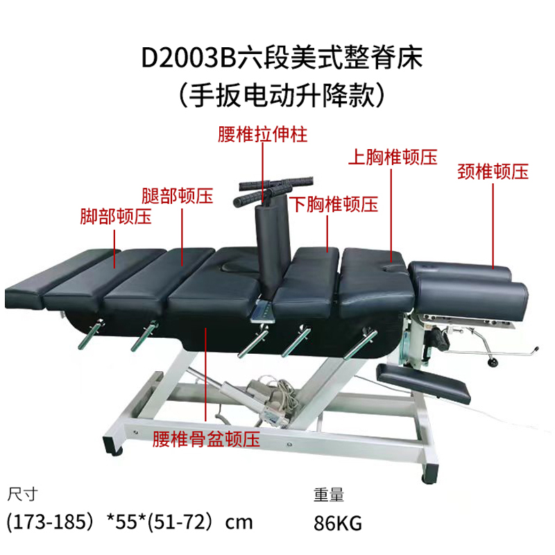 D2003B六段美式整脊床(手扳電動(dòng)升降款)